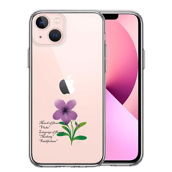 iPhone13 ケース ハードケース ハイブリッド クリア 一輪花 3月 すみれ 花言葉 カバー アイフォン スマホケース