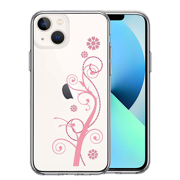 iPhone13 mini ケース ハードケース ハイブリッド クリア フローラル つる模様 ピンク カバー アイフォン スマホケース