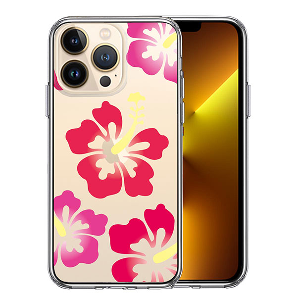 iPhone13 Pro ケース ハードケース ハイブリッド クリア ハイビスカス レッド カバー アイフォン スマホケース