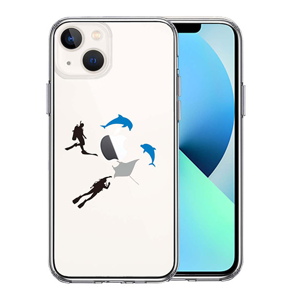 iPhone13 ケース ハードケース ハイブリッド クリア スキューバダイビング マンタ カバー アイフォン スマホケース