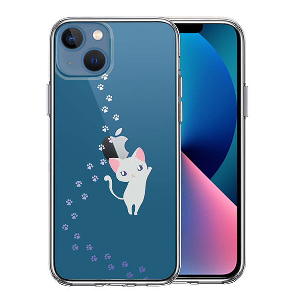 iPhone13 ケース ハードケース ハイブリッド クリア ジャケット ねこ フットプリント カバー アイフォン スマホケース