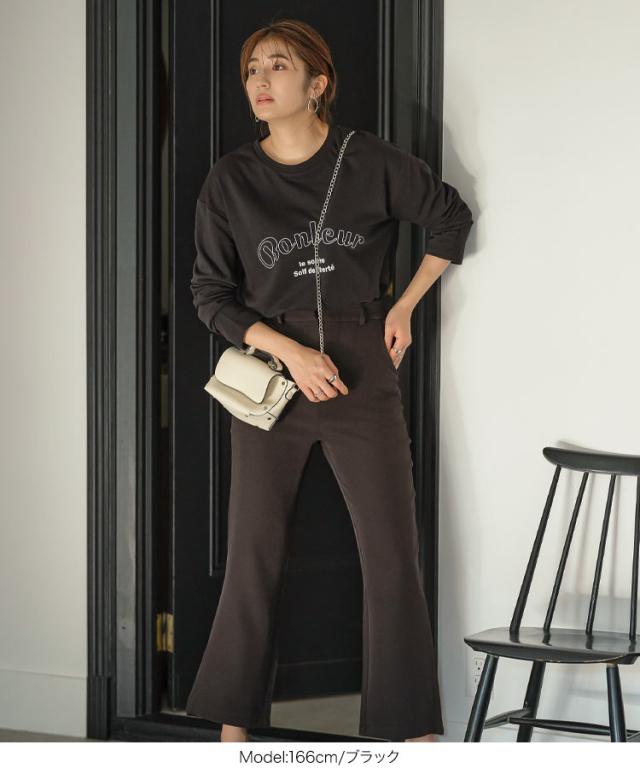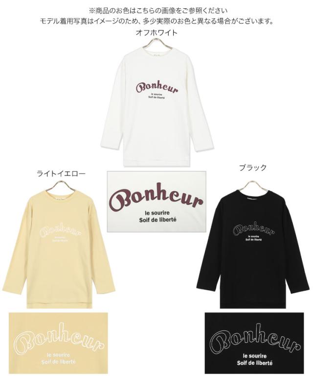 春新作 ロゴプリントライトスウェット C5992 入荷済 レディース トップス 長袖 ミニ裏毛 サイドスリット ゆったり 着回し 40代 春 大人 カジュアル レイヤード 黒 白 シンプル 綿 コットン混 体型カバー 重ね着 万能 大人可愛い 大人カジュアル