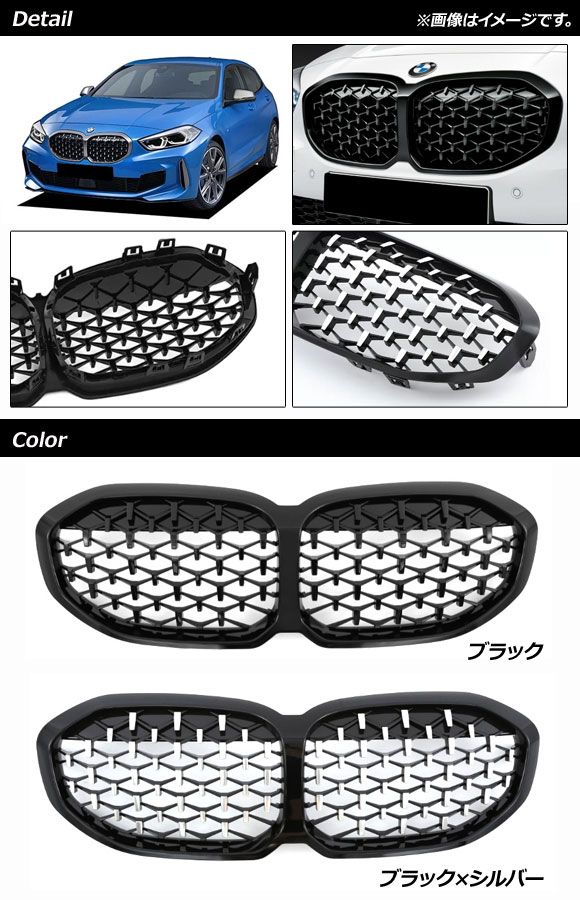 フロントグリルカバー BMW 1シリーズ F40 エアフラップ装備車不可 2019年〜 ブラック×シルバー ABS樹脂製 AP-FG420-BKSI AP ダイヤモンド型グリル フロントグリルガーニッシュ バンパーグリルカバー バンパーグリルガーニッシュ グリルガーニッシュ グリルカバー バンパーガーニッシュ フロントグリル フロント フロントフェイス グリル バンパー カバー フレーム フィン ガーニッシュ リム トリム ベゼル メッキ メッキパーツ プロテクト プロテクター 傷予防 傷付き防止 外装 外装パーツ パーツ エクステリア ドレスアップ カスタム カスタマイズ 装飾 装飾パーツ ABS ABS樹脂 樹脂 黒 black 銀 シルバー silver クローム CHROME