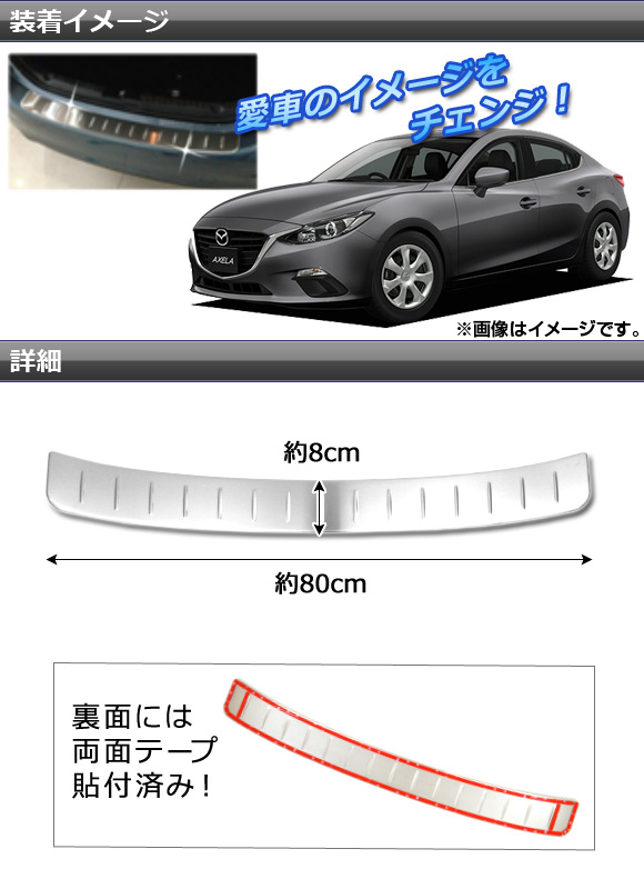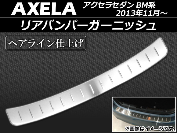 リアバンパーガーニッシュ マツダ アクセラセダン BM系 2013年11月〜 ステンレス製 ヘアライン仕上げ APSINA-AXELA016