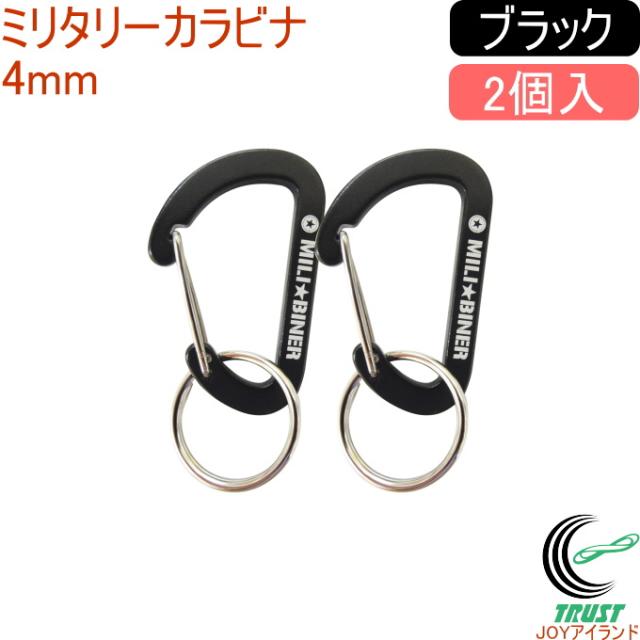 ミリタリーカラビナ 4mm ブラック 2個入 MCB-1 ネコポス対応 カラビナ キーホルダー ストラップ フック おしゃれ ファッション アウトドア 小物 鍵 キー バッグ