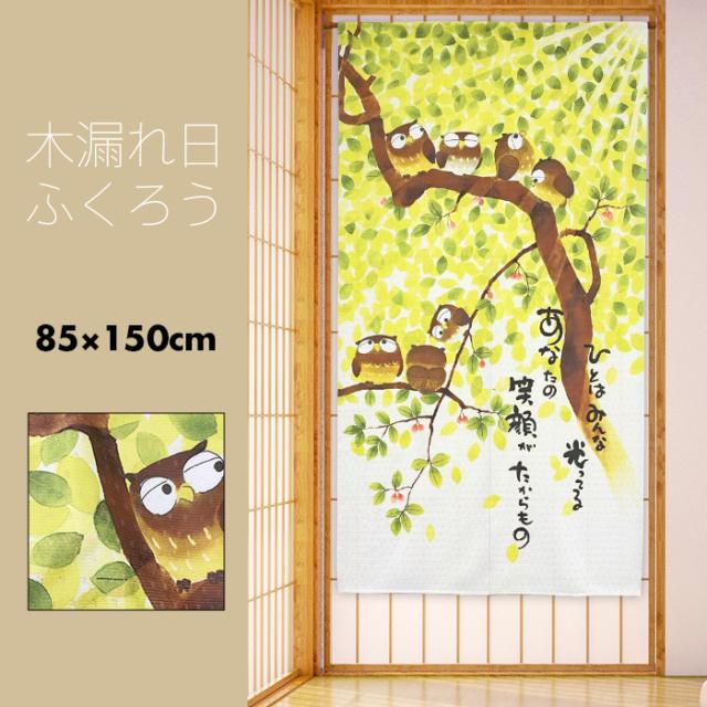 のれん おしゃれ カーテン 間仕切り 目隠し 和風 和柄 メッセージ付き 縁起物 幸運 招福 風水 木漏れ日ふくろう 85×150cm