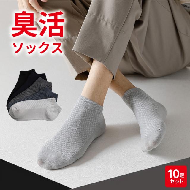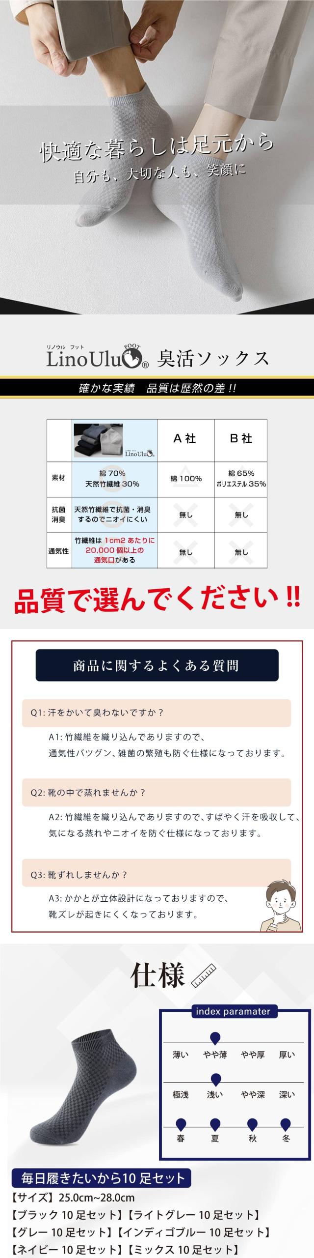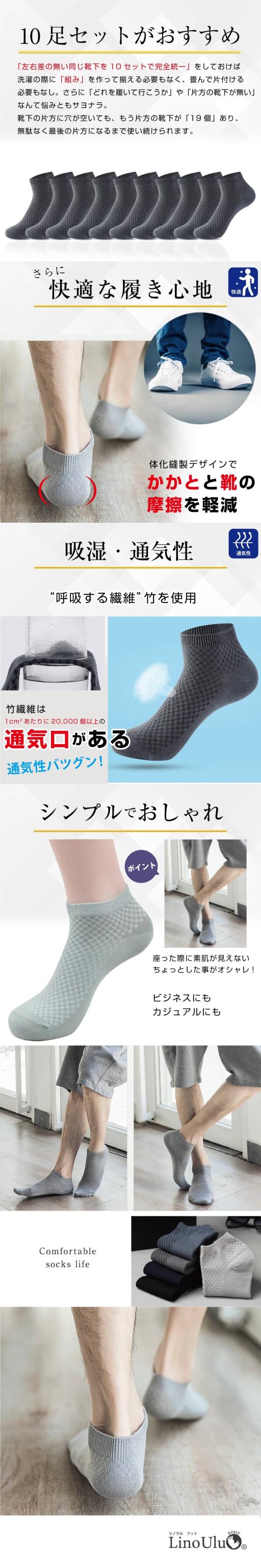[10足セット]靴下 メンズ 脱げない 10足組 竹繊維 綿 消臭 抗菌 ソックス フットカバー ビジネス ビジネスソックス ショートソックス カジュアル スニーカー ボーダー 学生 男子 高校生 おしゃれ リノウルフット