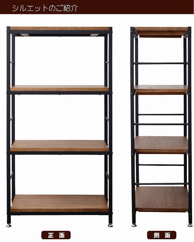 ラック オープンラック 木製 薄型 棚 アンティーク 幅60 4段 小型 60 収納 おしゃれ スリム スチール リビング シェルフ 奥行35 本棚