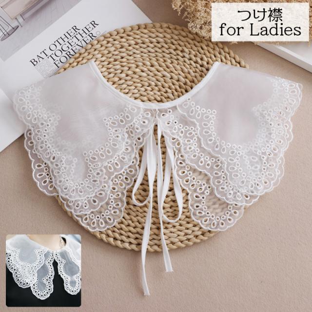 付け襟 つけ襟 レディース レース 透け感 スカラップ ダブル 白襟 重ね着風 レイヤード風 前後リバーシブル ブラウス襟 おし