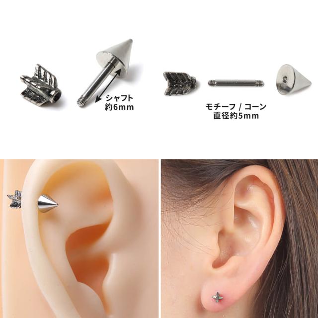アロー コーン ストレートバーベル 14G 16G 18G サージカルステンレス イヤーロブ ヘリックス 軟骨ピアス ボディピアス アロー コーン