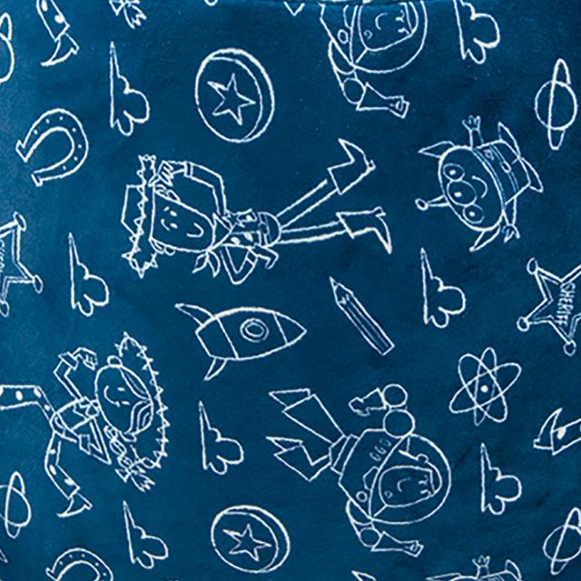トイ・ストーリーで活躍する仲間たちが描かれた、レトロな雰囲気のデザインです。鉛筆で描いたような落書き風のイラストが個性的。落ち着いた色味なのでお部屋に馴染みやすく、子供部屋にもおすすめです。