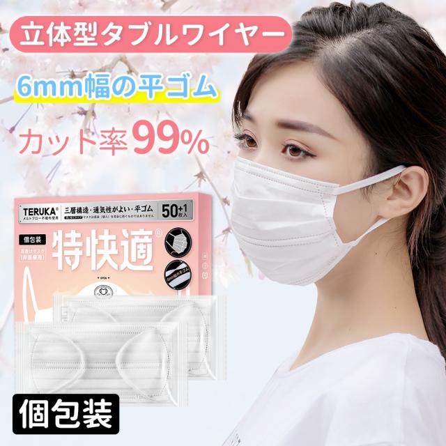 【マスク】【個装】【立体型マスク】 ダブルワイヤー BFE/PFE/VFE99% 個包装 6mm平ゴム 〈代引き・日時指定不可・沖縄/離島への配送不可〉