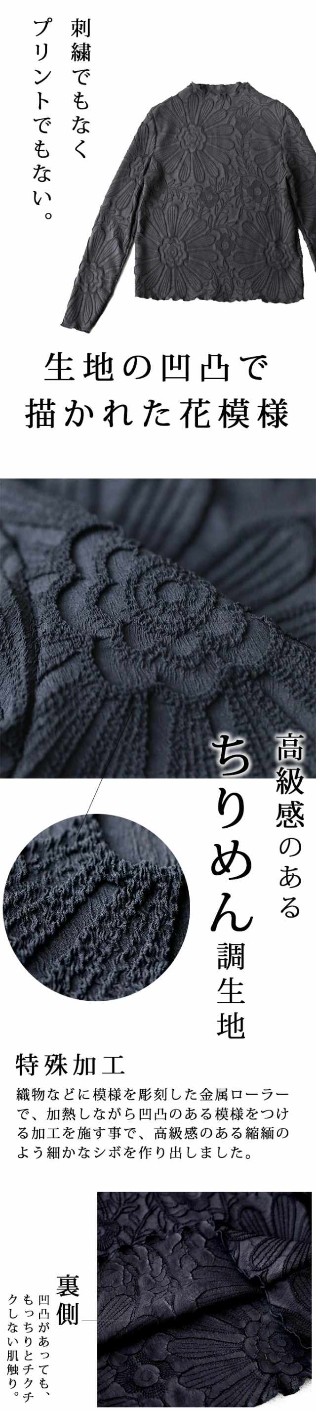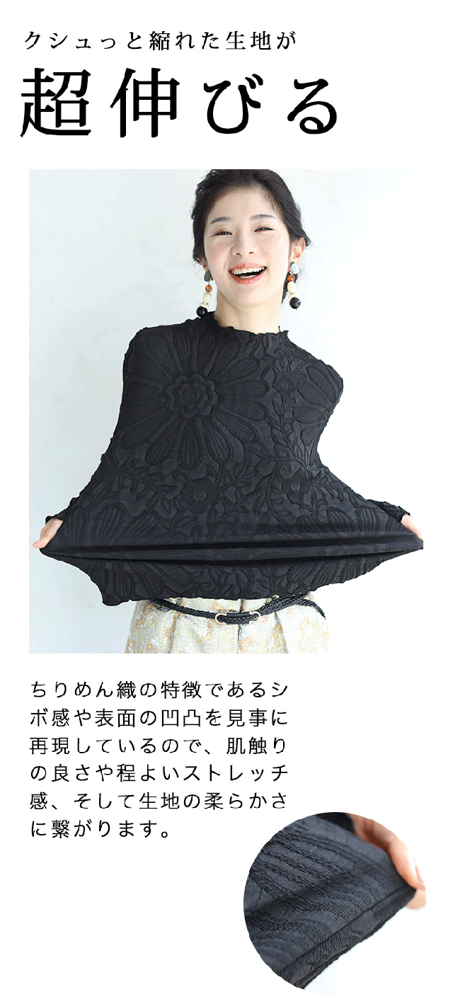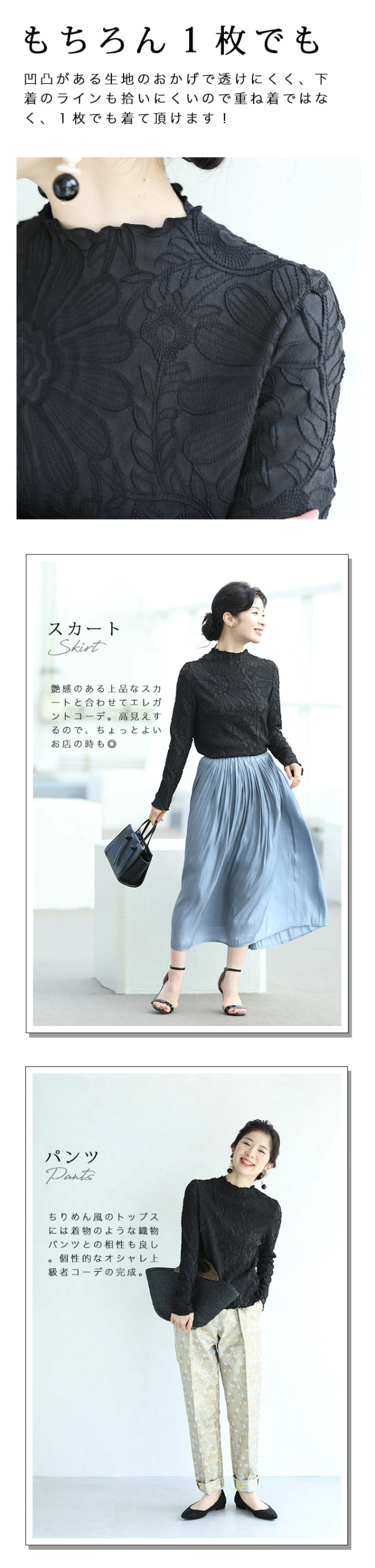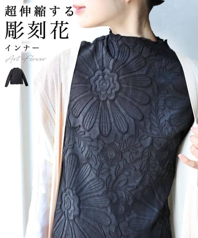 超伸縮する 彫刻花インナー w54722bk S~M cawaii インナー 長袖 レディース 春 ロングTシャツ 長袖 ロンT 花柄 ちりめん 調生地 透けにくい 体型カバー 二の腕 お腹 お尻 春 夏 春新作 夏新作 予約 レイヤード シワになりにくい オフィス お呼ばれ 通勤 きれいめ