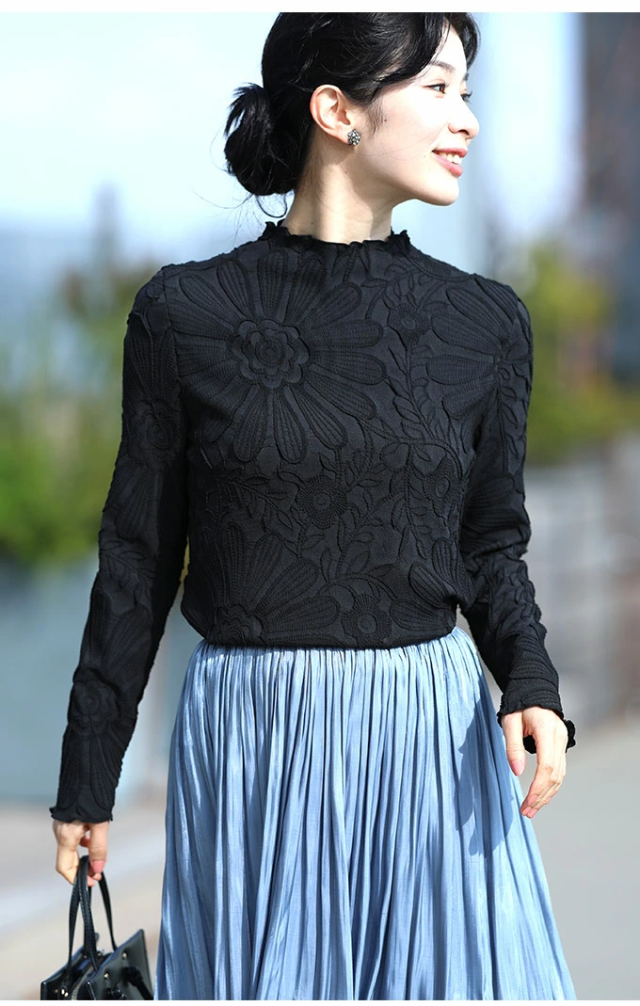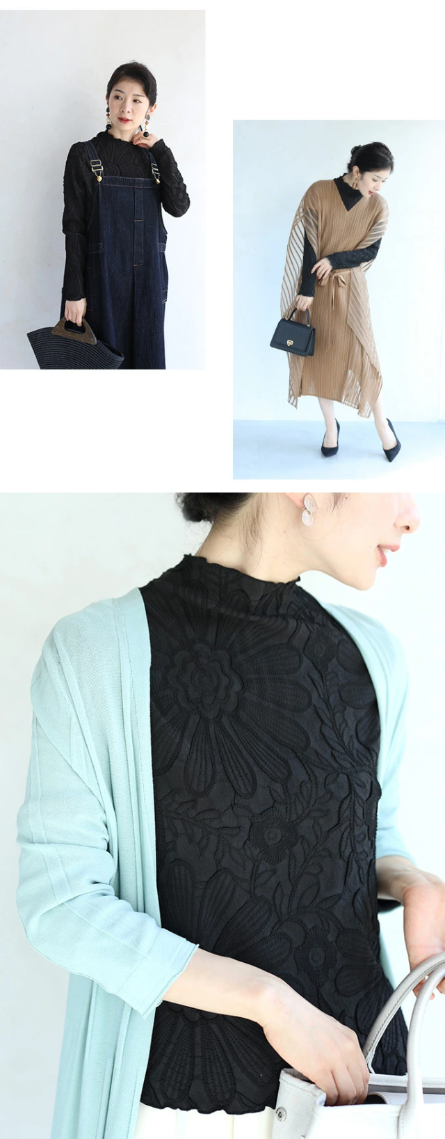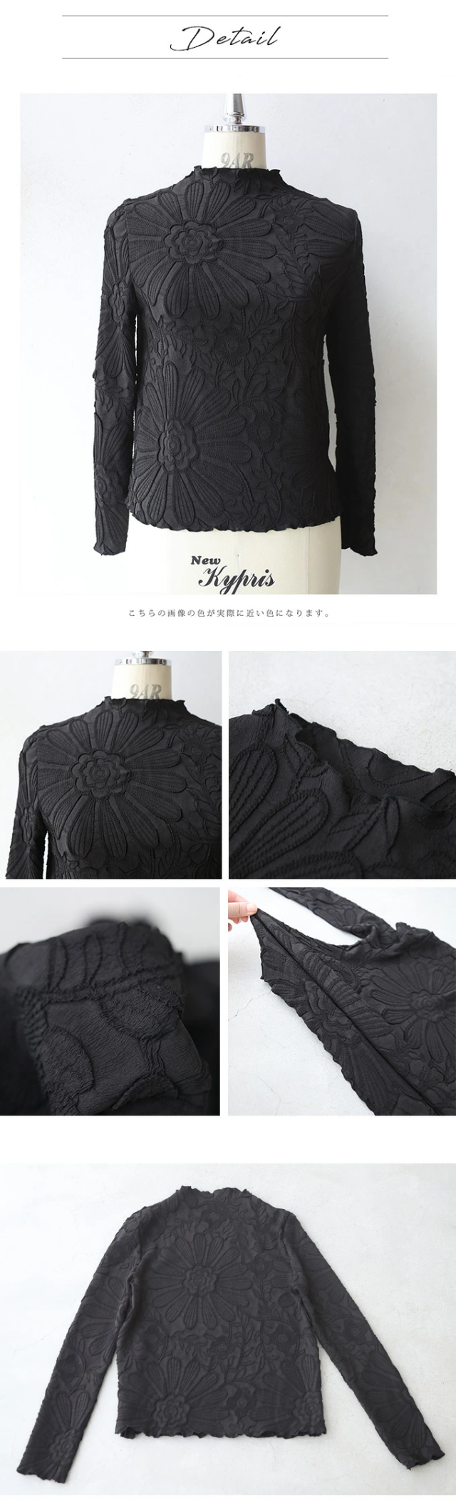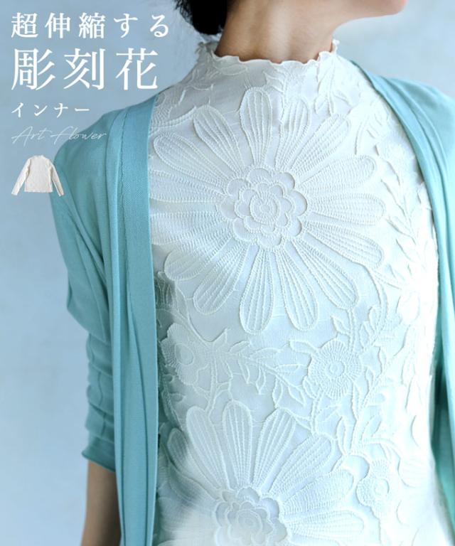 超伸縮する 彫刻花インナー w54722bk S~M cawaii インナー 長袖 レディース 春 ロングTシャツ 長袖 ロンT 花柄 ちりめん 調生地 透けにくい 体型カバー 二の腕 お腹 お尻 春 夏 春新作 夏新作 予約 レイヤード シワになりにくい オフィス お呼ばれ 通勤 きれいめ
