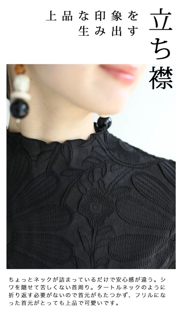 w54722bk 新作 新着 再入荷 CAWAII FRENCHPAVE フレンチパヴェ エレガント ベーシック カジュアル 可愛い かわいい カワイイ おしゃれ オシャレ お洒落 個性 個性的 定番 ベーシック 大人かわいい 大人可愛い 上品 女性らしい デザイン スタンダード ナチュラル きれいめ キレイめ レディース レディースファッション 大人 ママ ミセス 30代 40代 50代 60代 シンプル フェミニン Tシャツ カットソー プルオーバー 肌着 長袖 ロング袖 長そで ハイネック S M 小さめ 小さめサイズ小さい 小さいサイズ 低身長 痩せ ほっそり 小柄 細身 薄手 涼しい ずずしい 春 夏 秋 春服 春物 夏 夏服 夏物 伸縮 ストレッチ 伸びる 伸縮性 のびのび ワンカラー ワントーン 日常着 普段着 日常使い ヘビロテ 毎日着れる ブラック 黒色