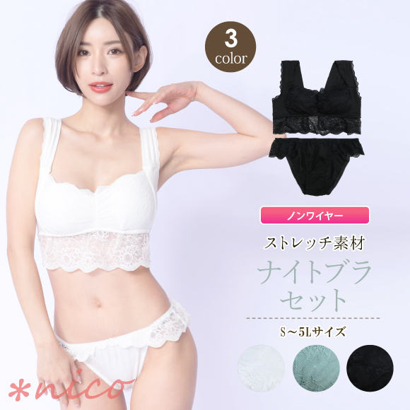 商品名(商品番号):S-5L ブラジャーノンワイヤー ナイトブラ &ショーツセット (j-4005)