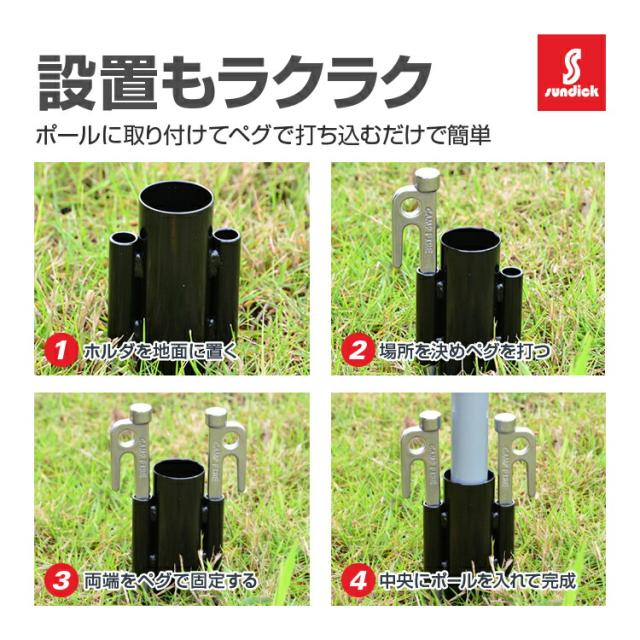 【2個セット】SUNDICK テントポール/タープポール用 固定ホルダー スチール製 強風対策 アウトドア SDKCRH02S