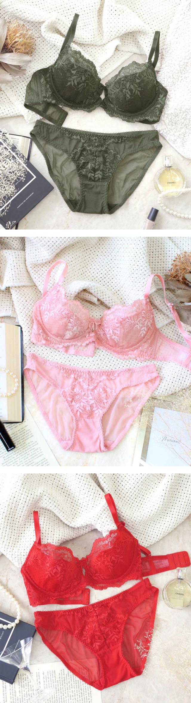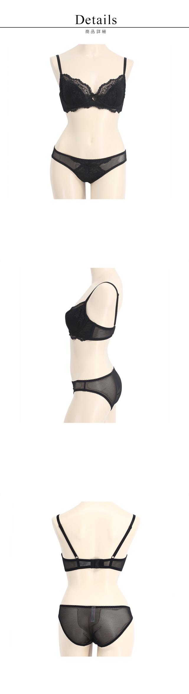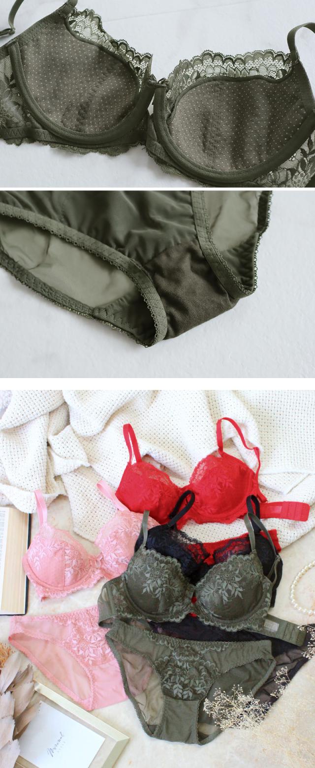 | バストに華やぎを与え、誰もの視線をくぎ付けにできるノンパテッドブラ。 輝きを放つフラワーとリース。その美しさは、ガラスアートのよう。 全体にあしらったスカラップとセンターのダイヤモンドウィンドウが甘辛アクセントをプラス。 お揃いショーツは透け感のあるシースルーショーツです。 |