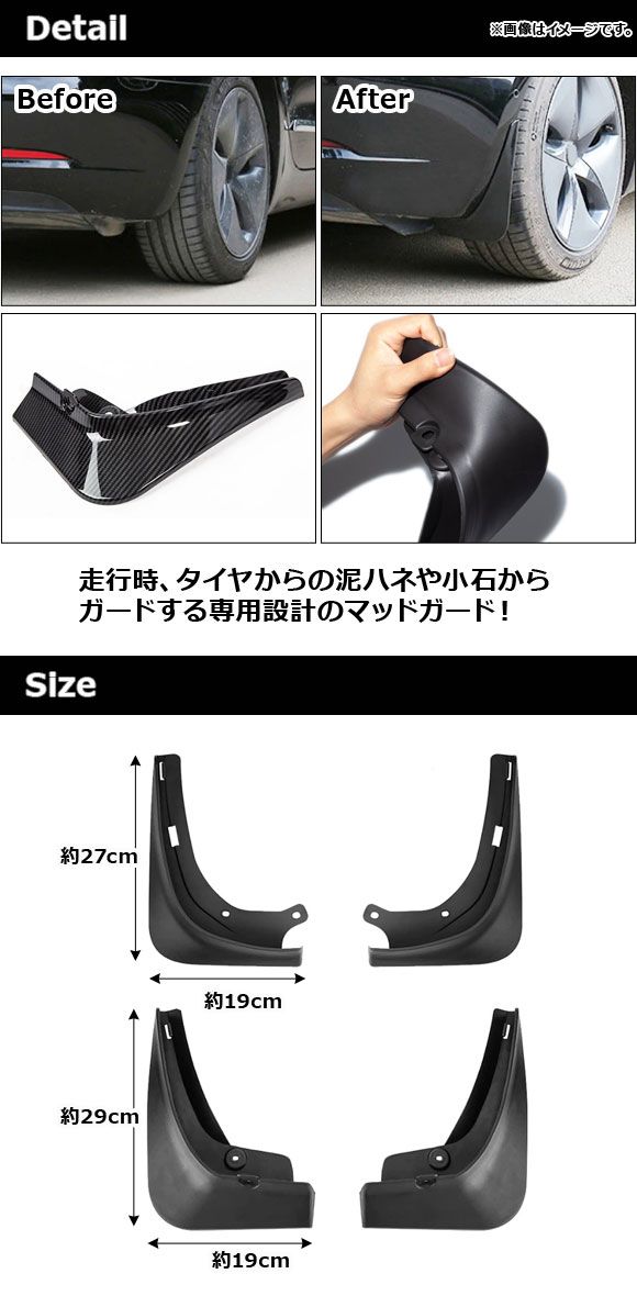 マッドガード テスラ モデル3 2021年〜 ダークグレー ABS製 入数:1セット(4個) AP-XT1243-DGY AP マッドフラップ マッドガードフェンダー 泥よけ 泥除け マッド ガード フェンダー 泥除けフェンダー 泥よけフェンダー マットガード スプラッシュガード スプラッシュボード スプラッシュ フラップ ボード フロント リア リヤ リアー リヤー 前 前方 後ろ 後方 汚れ防止 汚れ キズ防止 きず キズ 傷 防止 守る 泥はね 泥 どろ 石 タイヤ 車輪 ラリーレイド ラリー ABS ABS樹脂 樹脂 外装 外装パーツ パーツ エクステリア ドレスアップ カスタム カスタマイズ 装飾 ダーク dark グレー gray 灰色 glossy silver シルバー 銀 光沢 ツヤ 艶