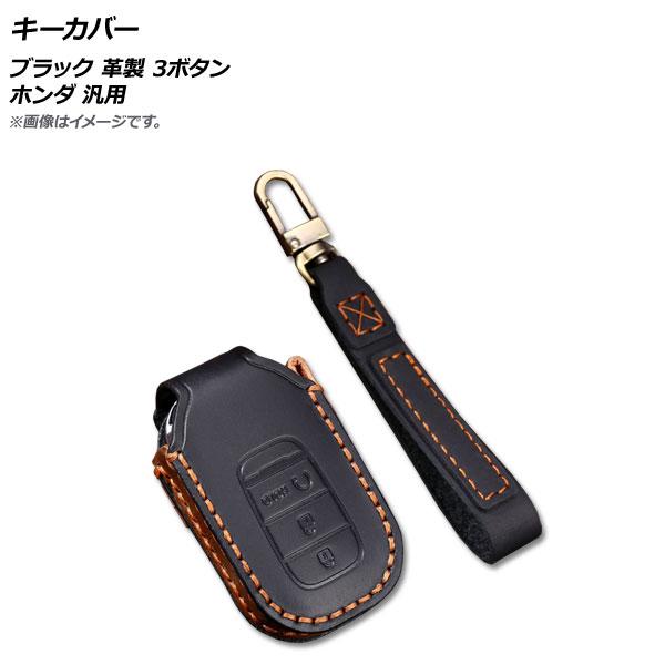 キーカバー ブラック 革製 3ボタン ホンダ 汎用 AP-AS494-C-BK