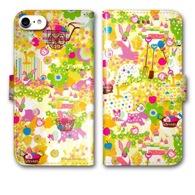 【ラッピング無料】 ホラグチカヨ iPhone15 ケース 手帳型 スマホケース iPhone16e 16 15 Pro 15 Plus 14 13 12 11 スマホカバー アニマル柄 ウサギ ヒツジ お花やりんごがいっぱい アイフォン カバー アイホンケース 手帳 多機種対応