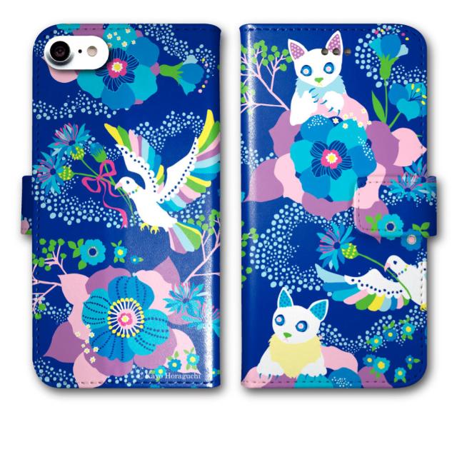 【ラッピング無料】 ホラグチカヨ iPhoneSE 第3世代 ケース 手帳型 スマホケース iPhone16e 16 15 14 13 12 11 Pro スマホカバー アニマル柄 ネコ ハト フラワー リボン ブルー アイフォン カバー アイホンケース 手帳 多機種対応