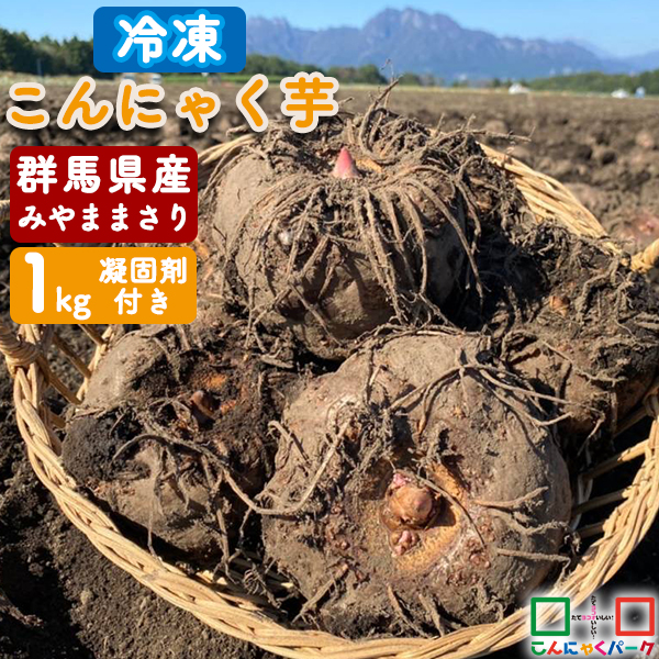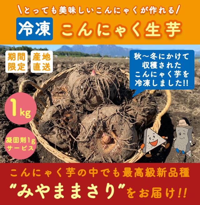2025年度秋〜冬収穫 期間限定 こんにゃく芋 冷凍 群馬県産 みやままさり 手作りこんにゃく 産地直送 1kg 凝固剤10gサービス こんにゃくパーク