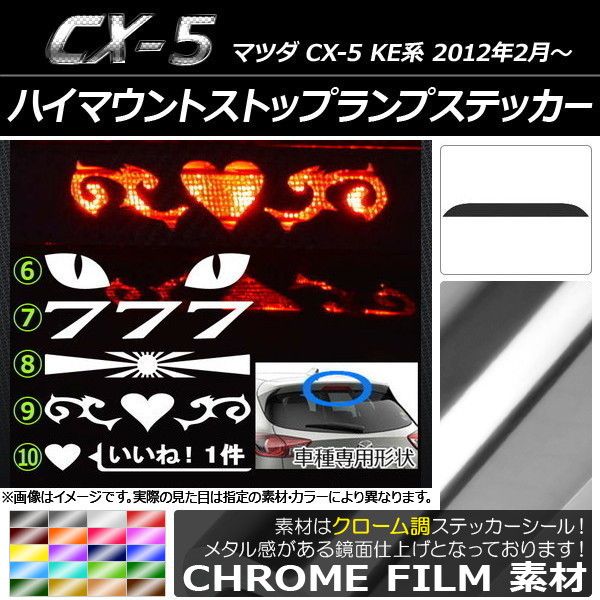 ハイマウントストップランプステッカー クローム調 マツダ CX-5 KE系 前期/後期 選べる20カラー タイプグループ2 AP-CRM435 カラー: ブラック ホワイト レッド ブルー イエロー グリーン オレンジ パープル ピンク ネイビー ブラウン ボルドー ゴールド シルバー マゼンタ ダークグリーン ライトグリーン ライトブルー ローズゴールド シアン