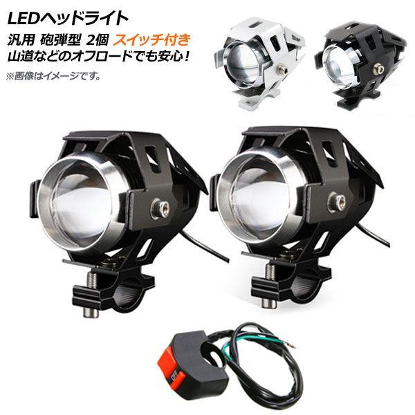 AP LEDヘッドライト スイッチ付き 汎用 砲弾型 選べる2カラー AP-2L033-2P-SW 入数:2個 2輪 カラー: ブラック シルバー