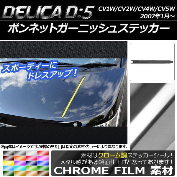 ボンネットガーニッシュステッカー ミツビシ デリカD:5 CV1W/CV2W/CV4W/CV5W 2007年1月〜 クローム調 選べる20カラー AP-CRM660 入数:1セット(2枚)