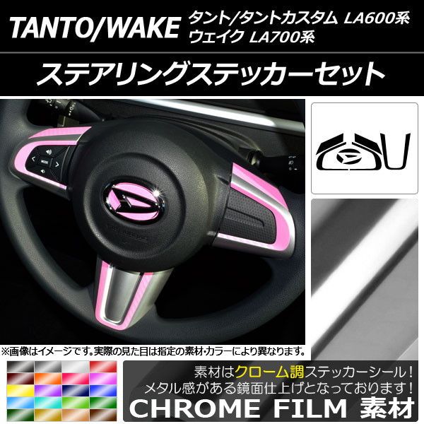 ステアリングステッカーセット クローム調 ダイハツ タント/タントカスタム/ウェイク LA600系/LA700系 前期/後期 2013年10月〜 選べる20カラー AP-CRM941