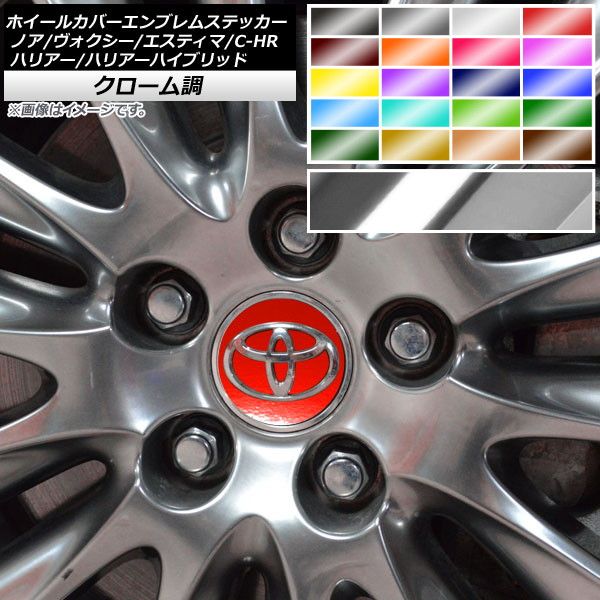 ホイールカバーエンブレムステッカー クローム調 トヨタ C-HR エスティマ ノア/ヴォクシー ハリアー/ハリアーハイブリッド 選べる20カラー AP-CRM2675