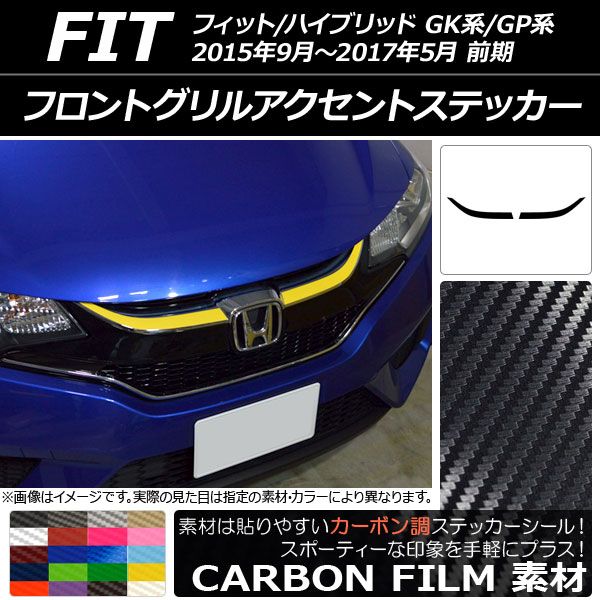 フロントグリルアクセントステッカー カーボン調 ホンダ フィット/ハイブリッド GK系/GP系 前期 選べる20カラー 入数:1セット(2枚) AP-CF2252