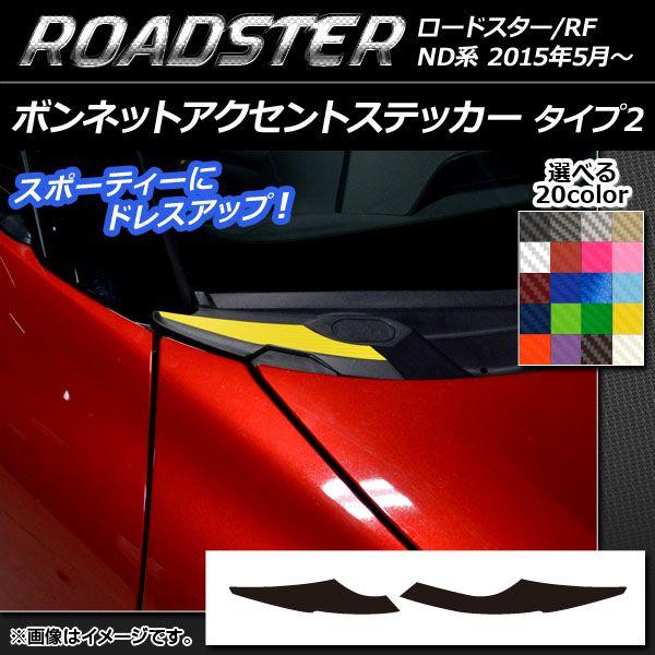 ボンネットアクセントステッカー タイプ2 カーボン調 マツダ ロードスター/ロードスターRF ND系 2015年05月〜 選べる20カラー 入数:1セット(2枚) AP-CF2408