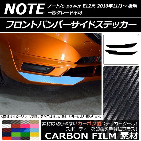 フロントバンパーサイドステッカー ニッサン ノート/ノートe-power E12系 後期 2016年11月〜 カーボン調 選べる20カラー AP-CF3270 入数:1セット(2枚)