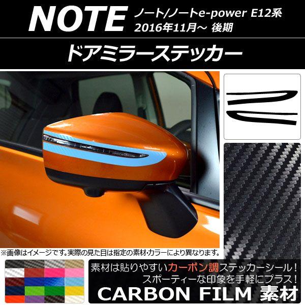 ドアミラーステッカー カーボン調 ニッサン ノート/ノートe-power E12系 後期 2016年11月〜 選べる20カラー 入数:1セット(2枚) AP-CF3279