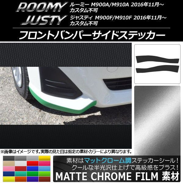 フロントバンパーサイドステッカー ルーミー,ジャスティ カスタム不可 M900/M910 マットクローム調 選べる20カラー AP-MTCR1156 入数:1セット(2枚)