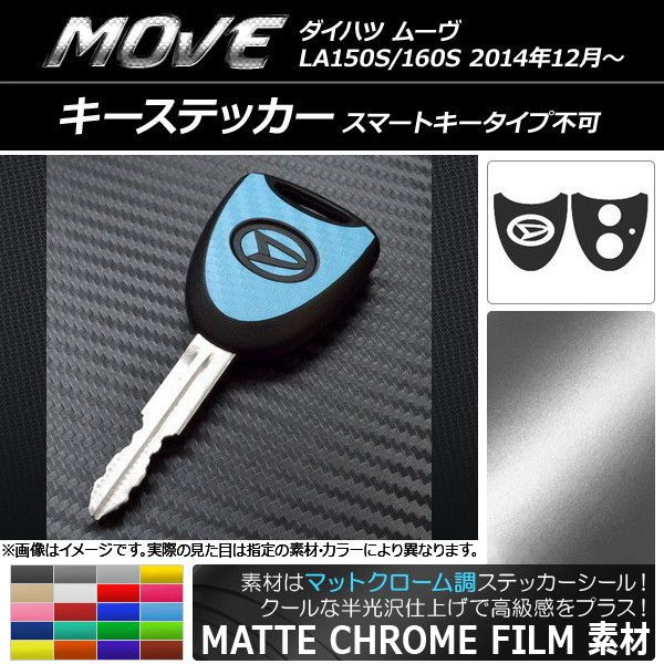 キーステッカー マットクローム調 ダイハツ ムーヴ LA150S/LA160S 2014年12月〜 選べる20カラー AP-MTCR1214 カラー: ブラック ホワイト レッド ブルー イエロー グリーン オレンジ パープル ピンク ネイビー ブラウン ボルドー ゴールド シルバー ガンメタリック マゼンタ ライトグリーン ライトブルー ライトゴールド シアン
