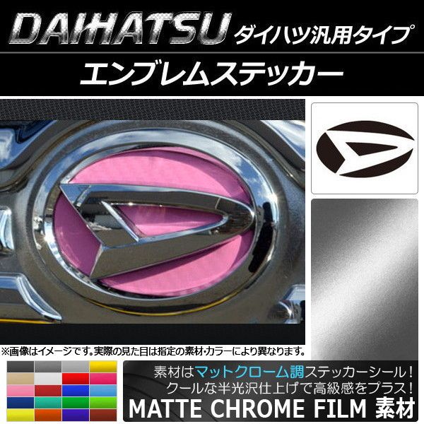 エンブレムステッカー マットクローム調 ダイハツ汎用タイプ フロント/リアどちらかに使用可能!(画像でサイズをご確認下さい) 選べる20カラー AP-MTCR1922