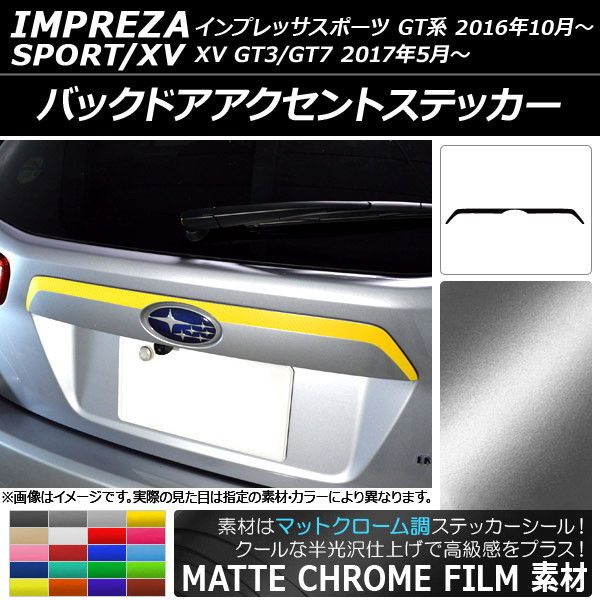 バックドアアクセントステッカー スバル インプレッサスポーツ/XV GT系 2016年10月〜 マットクローム調 選べる20カラー AP-MTCR2085