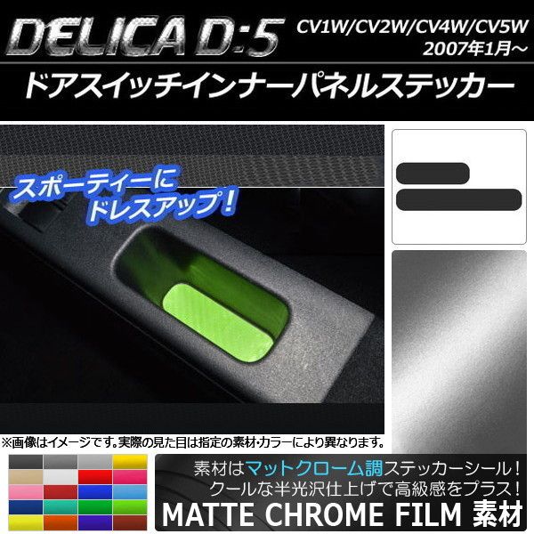 ドアスイッチインナーパネルステッカー マットクローム調 ミツビシ デリカD:5 CV1W/CV2W/CV4W/CV5W 選べる20カラー 入数:1セット(2枚) AP-MTCR628 カラー: ブラック ホワイト レッド ブルー イエロー グリーン オレンジ パープル ピンク ネイビー ブラウン ボルドー ゴールド シルバー ガンメタリック マゼンタ ライトグリーン ライトブルー ライトゴールド シアン