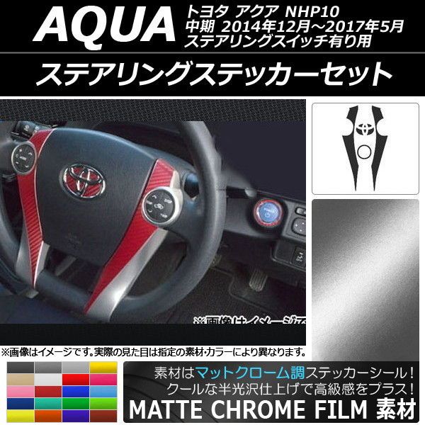ステアリングステッカーセット マットクローム調 トヨタ アクア NHP10 中期 ステアリングスイッチ有り用 2014年12月〜2017年05月 選べる20カラー AP-MTCR598