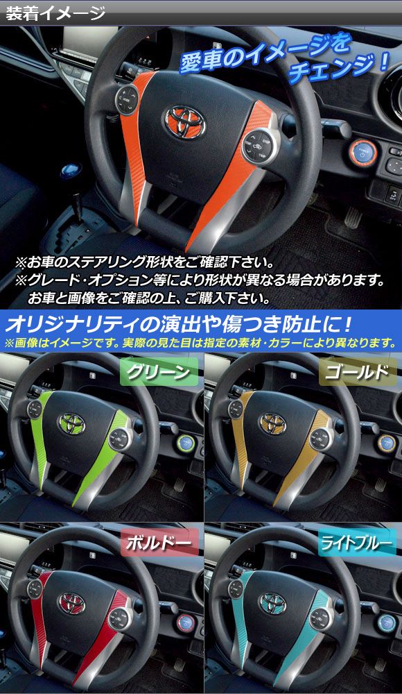 ステアリングステッカーセット マットクローム調 トヨタ アクア NHP10 中期 ステアリングスイッチ有り用 2014年12月〜2017年05月 選べる20カラー AP-MTCR598 カラー: ブラック ホワイト レッド ブルー イエロー グリーン オレンジ パープル ピンク ネイビー ブラウン ボルドー ゴールド シルバー ガンメタリック マゼンタ ライトグリーン ライトブルー ライトゴールド シアン
