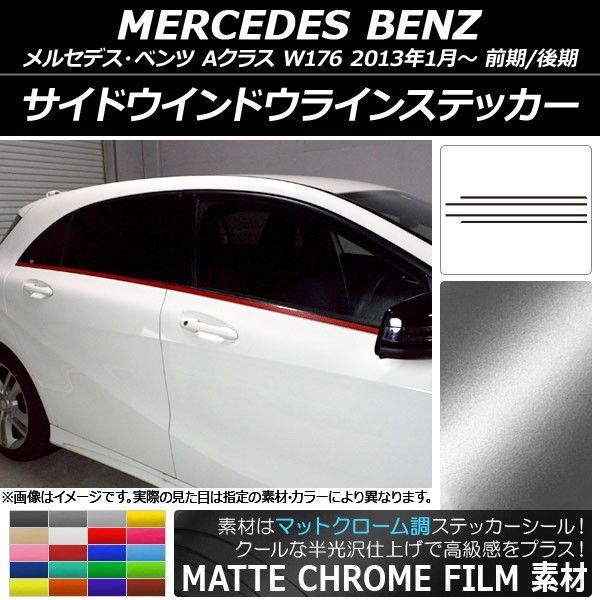 サイドウインドウラインステッカー メルセデス・ベンツ Aクラス W176 2013年01月〜 マットクローム調 選べる20カラー AP-MTCR2766 入数:1セット(4枚)