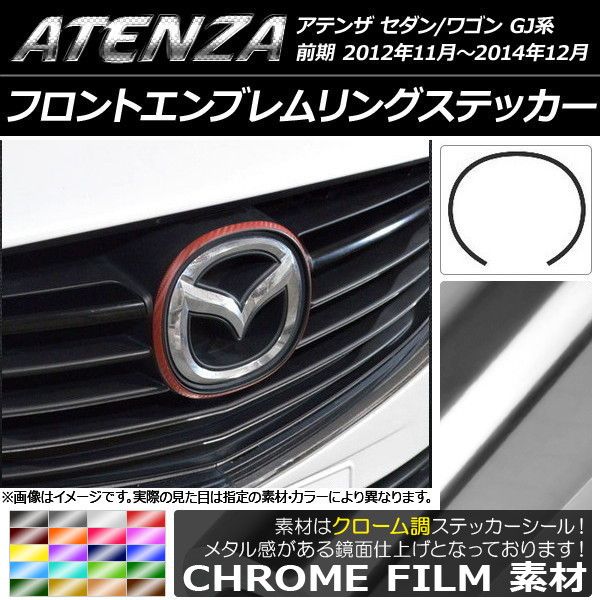 フロントエンブレムリングステッカー クローム調 マツダ アテンザセダン/ワゴン GJ系 前期 選べる20カラー AP-CRM1737