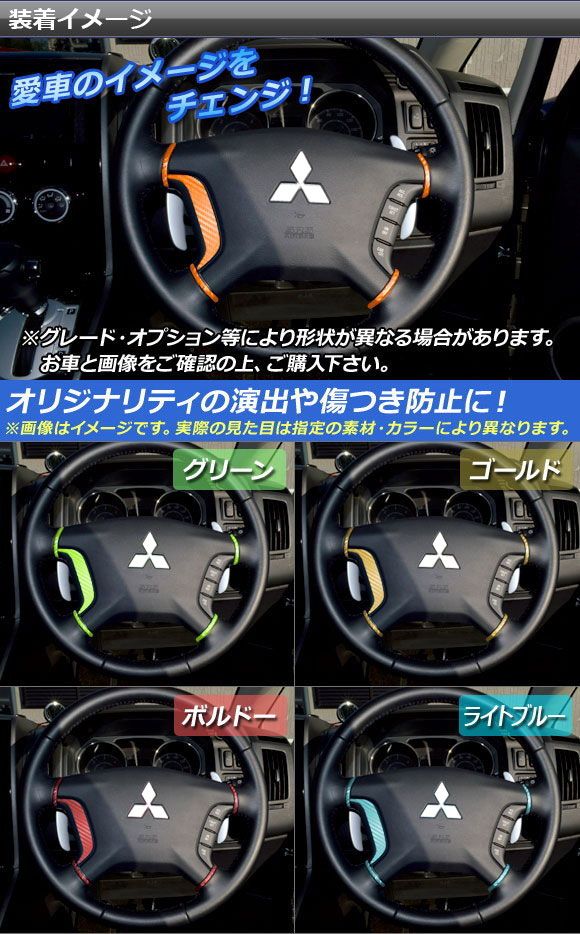 ステアリングステッカーセット カーボン調 ミツビシ デリカD:5 CV1W/CV2W/CV4W/CV5W 2007年01月〜 左側ステアリングスイッチ無し車用 選べる20カラー AP-CF618 カラー: ブラック ホワイト レッド ブルー イエロー グリーン オレンジ パープル ピンク ネイビー ブラウン ボルドー クリア ゴールド シルバー ガンメタリック マゼンタ ダークグリーン メタリックブルー ライトブルー