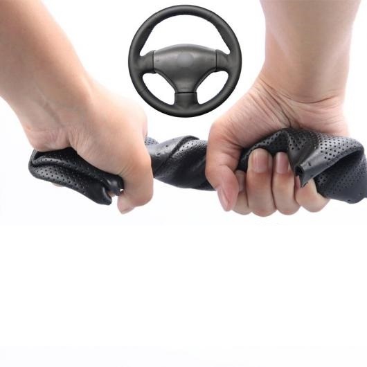 AL ステアリングホイールカバー 編み上げタイプ カーフスキン レザー ブラック ラップ 適用: プジョー 206 1998-2005 206 SW 2003-2005 206 ブラック 糸〜グレー 糸 AL-FF-0576