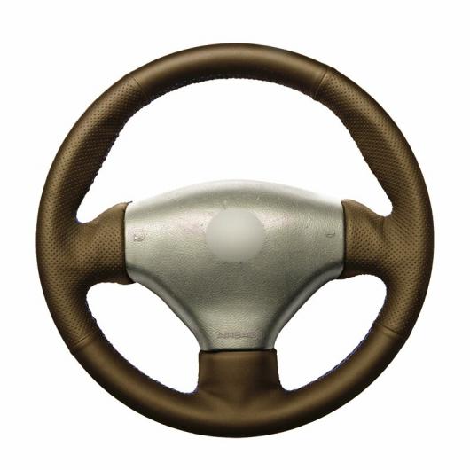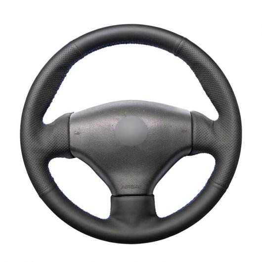 ステアリングホイールカバー 編み上げタイプ カーフスキン レザー ブラック ラップ 適用: プジョー 206 1998-2005 206 SW 2003-2005 206 ブラック 糸〜グレー 糸 AL-FF-0576 AL