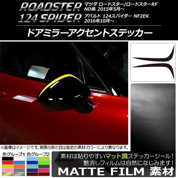 ドアミラーアクセントステッカー マット調 マツダ/アバルト ロードスター/RF/124スパイダー ND系/NF2EK 色グループ1 入数:1セット(2枚) AP-CFMT2413