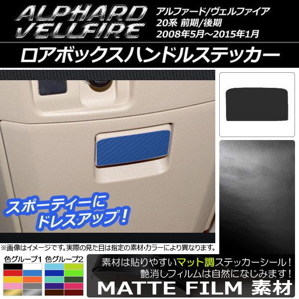 ロアボックスハンドルステッカー マット調 トヨタ アルファード/ヴェルファイア 20系 前期/後期 ハイブリッド不可 色グループ1 AP-CFMT691 色グループ1: ブラック ホワイト レッド ブルー イエロー オレンジ ピンク グレー ゴールド シルバー